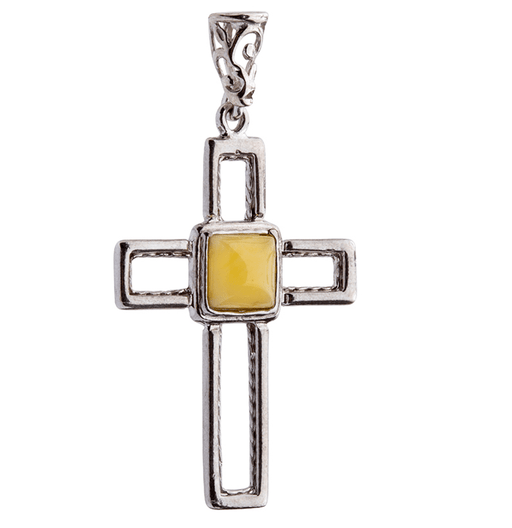 A small cross-shaped pendant. Made of the highest quality 925 silver and natural Baltic amber in the shape of rectangles. Dimensions: Total height ...
