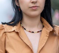 This 925 silver necklace boasts three cuboids of various amber colors, ensuring a versatile and eye-catching piece. Made with high-quality materials, this necklace is a perfect blend of elegance and durability. Its unique design and premium craftsmanship make it a must-have for any jewelry collection.