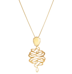 Upgrade your jewelry game with our gilded silver oriental necklace featuring a shimmering milky amber centerpiece. Handcrafted with the finest materials, this necklace exudes sophistication and elegance. Elevate any outfit with this amazing piece that captures the essence of timeless beauty.
