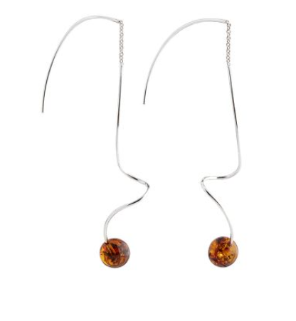 View full detailsVery elegant hanging 925 silver earrings in the shape of a spiral with Baltic amber