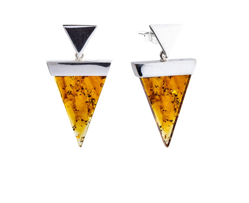 View full detailsSilver Triangle earrings with a square amber element on a stick
