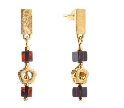 Beautifully crafted with cognac amber and gold-plated silver, these hanging earrings exude elegance and sophistication. The warm, rich hue of the a...