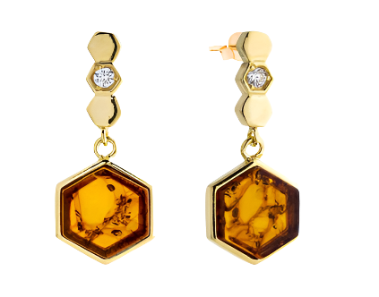 Enhance your style with our unique gold-plated earrings. The dazzling zircon and warm cognac amber add a touch of elegance to any outfit. Made with...