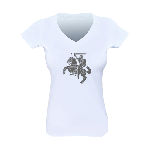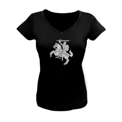 T-shirt with a triangle neckline with dark gray Vytis. 100% Cotton