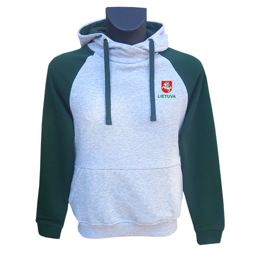 High-quality gray-green hoodie with the inscription "Lietuva" and Vytis
