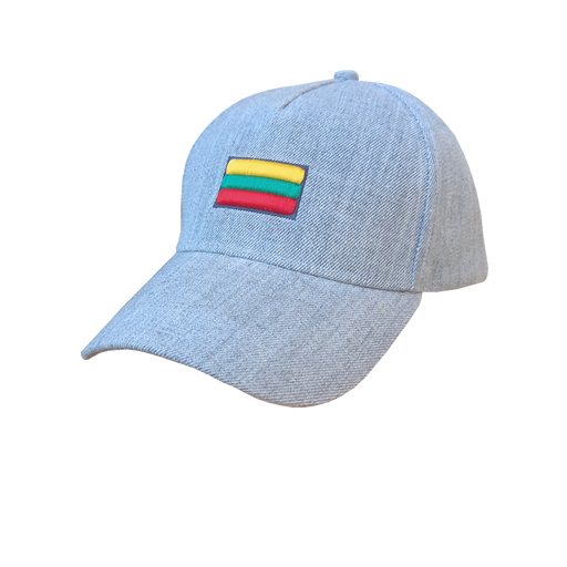 Melange color cap, embroidered with a prominent stylized logo "Lietuva"