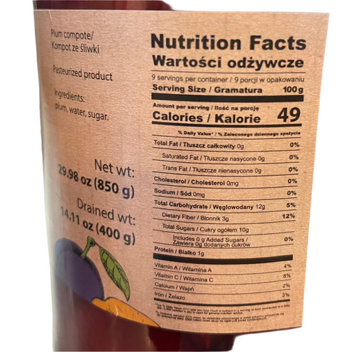 KOMPOT ZE SLIWKAMI,COMPOTE WITH PLUMS, GALICJA 850G
