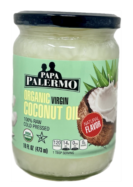 PALERMO COLD PRESSED ORGANIC VIRGIN COCONUT OIL (100%) (KOSHER) 16OZ/473ML