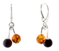 Hanging silver earrings with cognac/cherry Baltic amber balls 10 mm and 8 mm Earrings