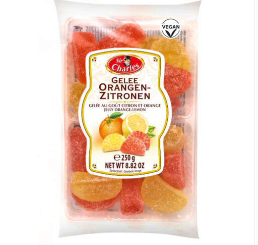 Introducing SIR CHARLES Gelee Beeren, the perfect blend of zesty lemon and sweet orange in vegan candy form. Indulge in these jellies and enjoy a g...