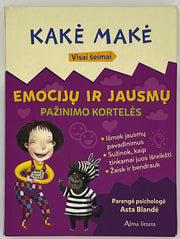 In your hands are "Kakės Makės" cards of emotions and feelings for the whole family. With these cards, you will be more confident in your journey of knowing your inner world. The cards will help you discover appropriate ways to express what you feel, share thoughts, feelings and experiences and strengthen mutual relationships.