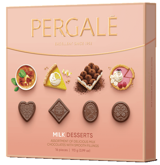 MILK DESSERT, BOXED CANDIES,PERGALE CANDIES ASSORTED GOURMET DESSERT COLLECTION, LITHUANIA, 113G GIFT BOX