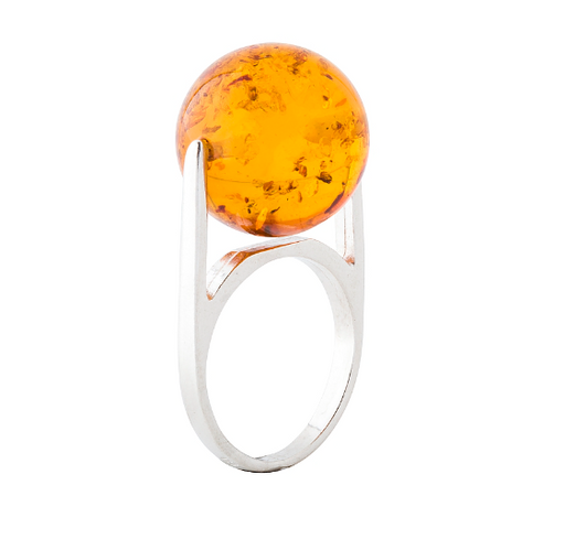 View full detailsElegant 925 silver ring with cognac Baltic amber, ball 18 mm