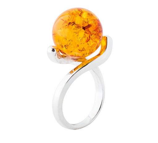 Expertly crafted with a cognac Baltic amber ball set in 925 silver, this elegant ring exudes luxury and sophistication. The amber ball glows with w...