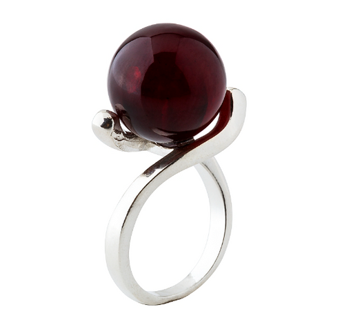 View full detailsElegant silver ring with cherry amber, ball 12 mm